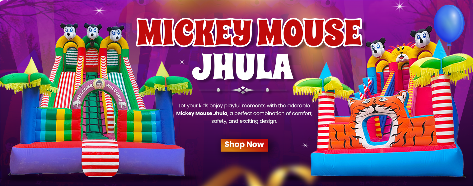 The products that we sell are Mickey Mouse Jhula, Mickey Mouse Bouncy, Jumping Jhula, Inflatable Arch, Inflatable Air Dancer, Zorbing Ball, Bouncy Castle, Outdoor Trampoline, Mascot Costume, Inflatable Pool, and others. These products are aimed at creating a joyful environment where people can enjoy themselves. They are also aimed at creating a bright environment that is full of joy as well as fun for young children and adults. Our products are safe, durable, and easy to use.